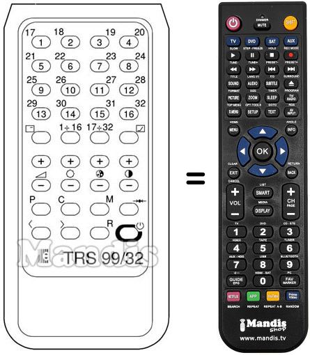 Télécommande qui remplace celle d'origine car elle possède les mêmes fonctions.
