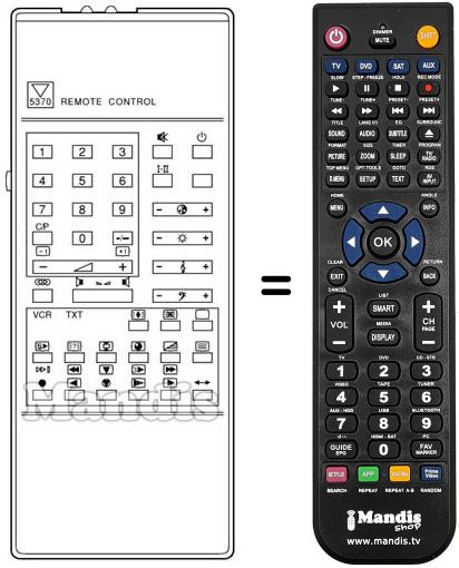 Télécommande qui remplace celle d'origine car elle possède les mêmes fonctions.