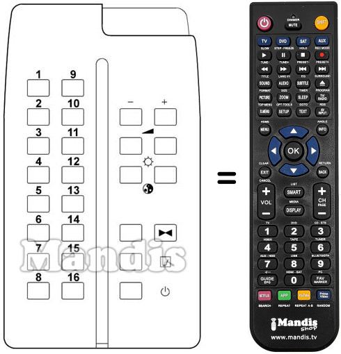 Télécommande qui remplace celle d'origine car elle possède les mêmes fonctions.