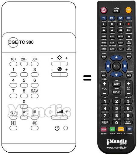 Télécommande qui remplace celle d'origine car elle possède les mêmes fonctions.