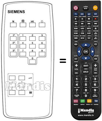 Télécommande qui remplace celle d'origine car elle possède les mêmes fonctions.