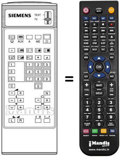 Télécommande qui remplace celle d'origine car elle possède les mêmes fonctions.