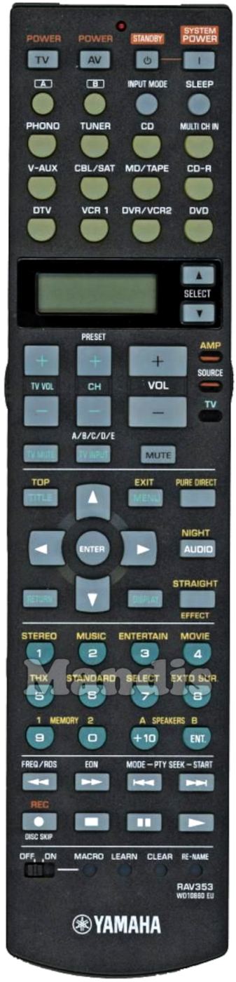 Télécommandes équivalentes qui remplacent la télécommande YAMAHA RAV353 (WD10860 EU) et possèdent exactement les mêmes fonctions :