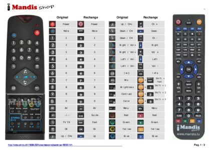 Un document est inclus pour vous aider à utiliser facilement la nouvelle télécommande, en indiquant la correspondance des boutons.