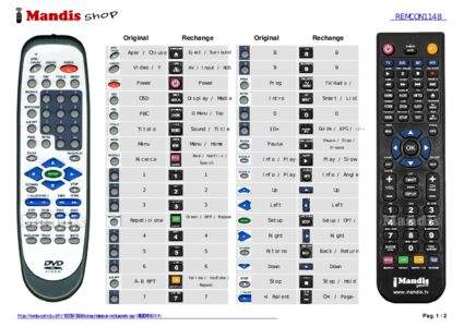 Un document est inclus pour vous aider à utiliser facilement la nouvelle télécommande, en indiquant la correspondance des boutons.