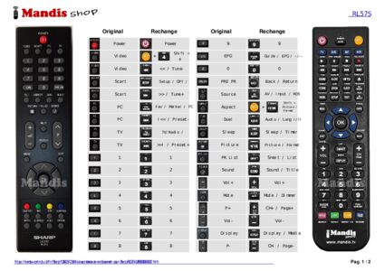 Un document est inclus pour vous aider à utiliser facilement la nouvelle télécommande, en indiquant la correspondance des boutons.