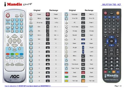 Un document est inclus pour vous aider à utiliser facilement la nouvelle télécommande, en indiquant la correspondance des boutons.
