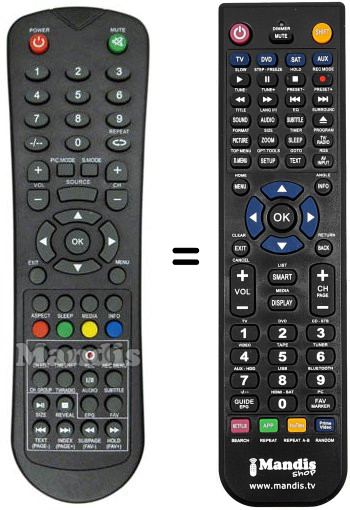 Télécommande qui remplace celle d'origine car elle possède les mêmes fonctions.