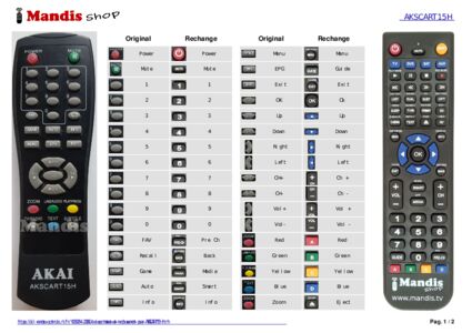 Cette télécommande remplace entièrement votre AKSCART15H et offre toutes les fonctions de l'originale.