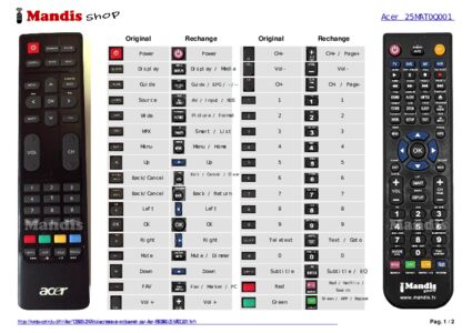 Un document est inclus pour vous aider à utiliser facilement la nouvelle télécommande, en indiquant la correspondance des boutons.