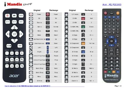 Accueil > Marques > Télécommandes Acer > Télécommande pour ACER MC.JPQ11.003