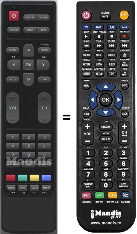 Télécommande qui remplace celle d'origine car elle possède les mêmes fonctions.
