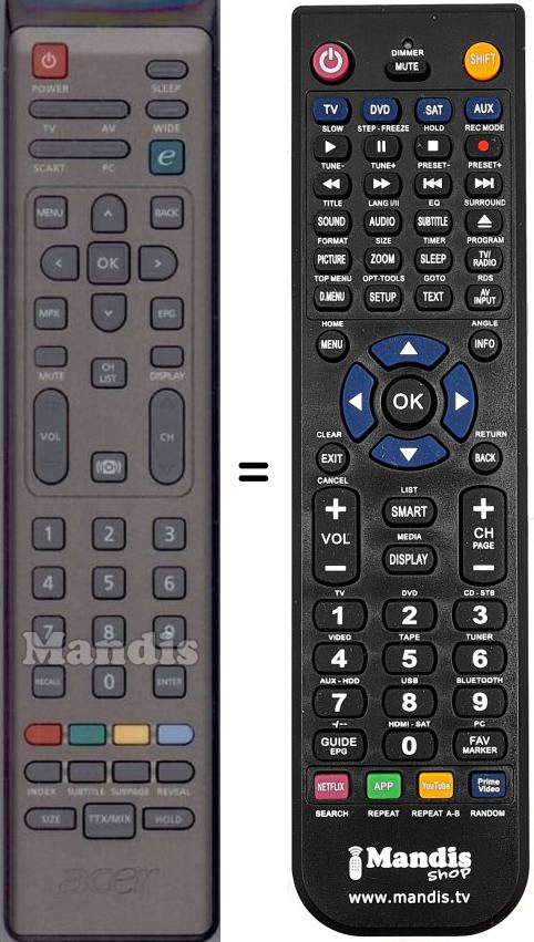 Télécommande qui remplace celle d'origine car elle possède les mêmes fonctions.