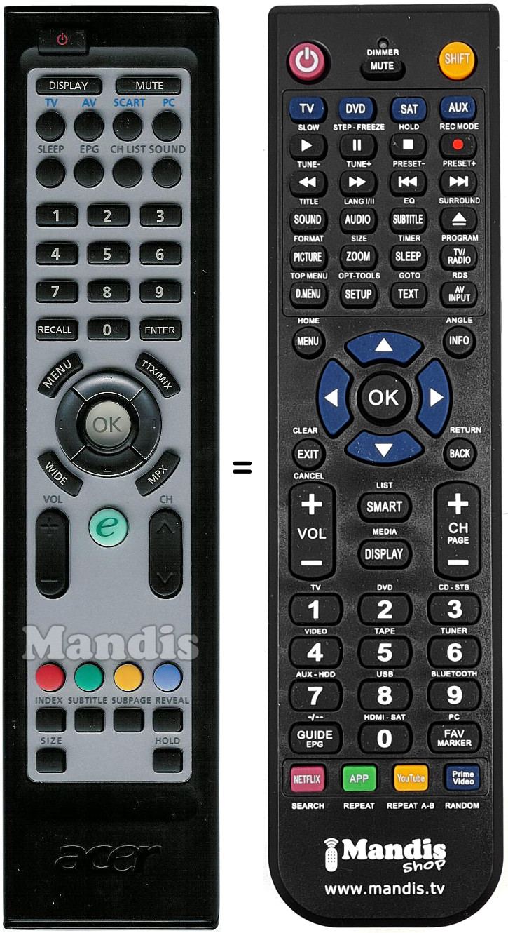 Télécommande qui remplace celle d'origine car elle possède les mêmes fonctions.