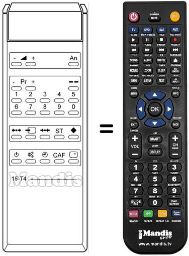 Télécommande qui remplace celle d'origine car elle possède les mêmes fonctions.