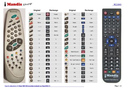 Un document est inclus pour vous aider à utiliser facilement la nouvelle télécommande, en indiquant la correspondance des boutons.