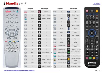 Un document est inclus pour vous aider à utiliser facilement la nouvelle télécommande, en indiquant la correspondance des boutons.