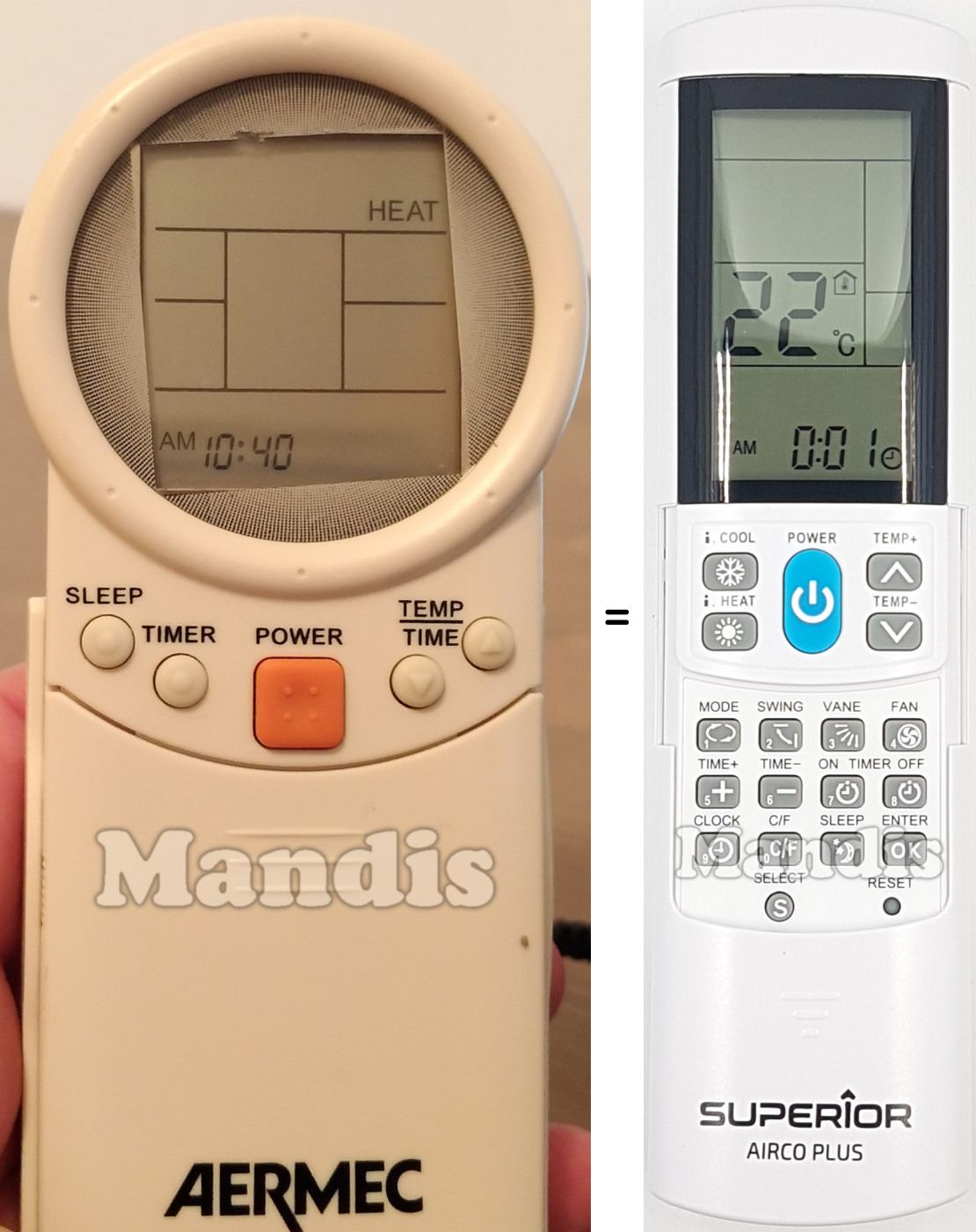 Accueil > Marques climatiseurs > Liste de télécommandes pour climatiseurs > Télécommande universelle AERMEC Aircoplus (42530)