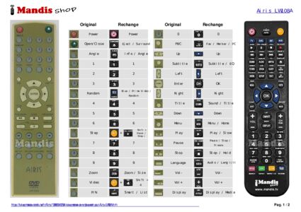Un document est inclus pour vous aider à utiliser facilement la nouvelle télécommande, en indiquant la correspondance des boutons.