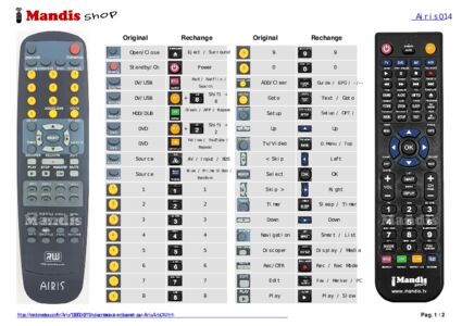 Cette télécommande remplace entièrement votre Airis014 et offre toutes les fonctions de l'originale.
