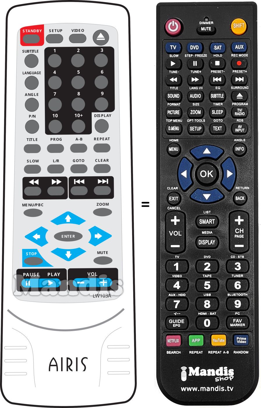 Télécommande qui remplace celle d'origine car elle possède les mêmes fonctions.