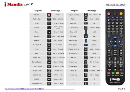 Un document est inclus pour vous aider à utiliser facilement la nouvelle télécommande, en indiquant la correspondance des boutons.