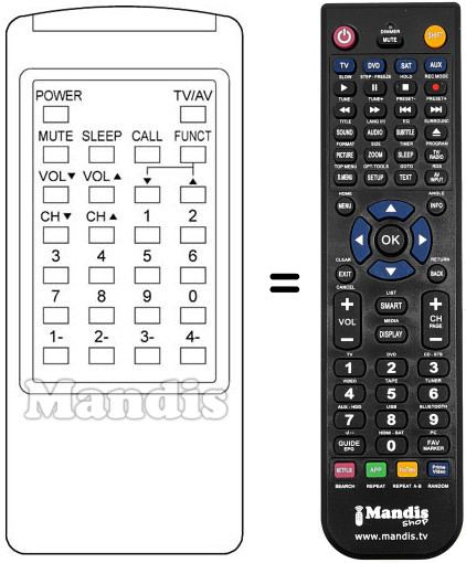 Télécommande qui remplace celle d'origine car elle possède les mêmes fonctions. Il ne s'agit pas d'une télécommande universelle mais d'une télécommande qui remplace celle d'origine. Vous recevrez la télécommande prête à fonctionner, vous n'aurez qu'à mettre les piles. Il n'est pas nécessaire de la programmer. Nous vous garantissons que la télécommande aura exactement les mêmes fonctions que celle d'origine.