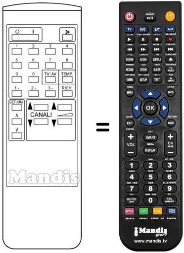 Télécommande qui remplace celle d'origine car elle possède les mêmes fonctions.