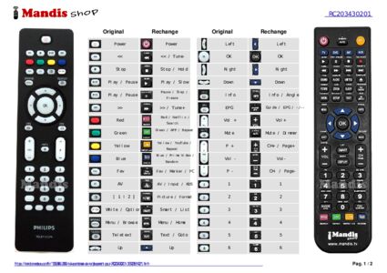 Un document est inclus pour vous aider à utiliser facilement la nouvelle télécommande, en indiquant la correspondance des boutons.