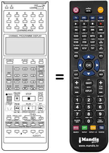 Télécommande qui remplace celle d'origine car elle possède les mêmes fonctions.