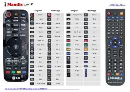 Un document est inclus pour vous aider à utiliser facilement la nouvelle télécommande, en indiquant la correspondance des boutons.