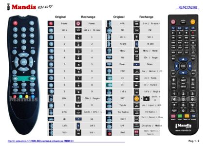 Un document est inclus pour vous aider à utiliser facilement la nouvelle télécommande, en indiquant la correspondance des boutons.