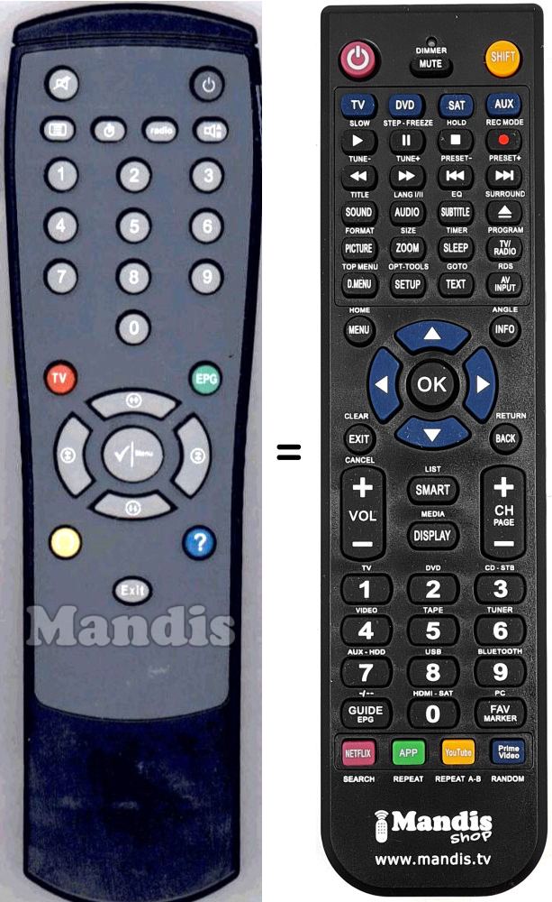 Télécommande qui remplace celle d'origine car elle possède les mêmes fonctions.
