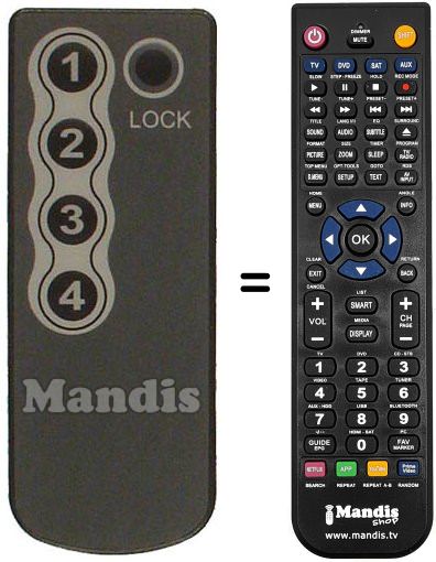 Télécommande qui remplace celle d'origine car elle possède les mêmes fonctions.