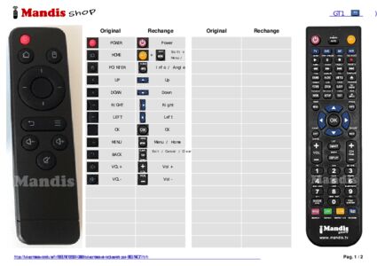 Cette télécommande remplace entièrement votre GT1 et offre toutes les fonctions de l'originale.