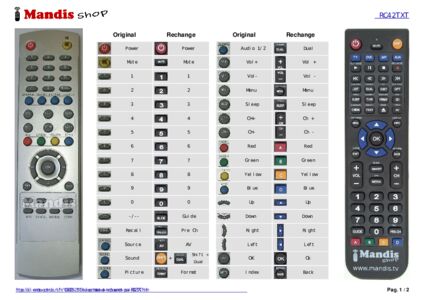 Un document est inclus pour vous aider à utiliser facilement la nouvelle télécommande, en indiquant la correspondance des boutons.
