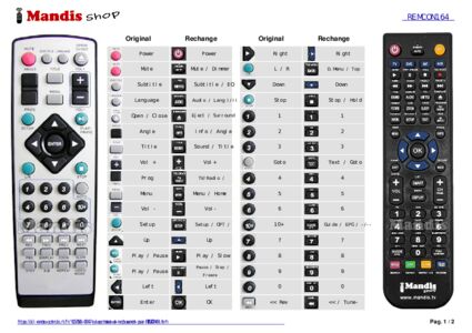 Un document est inclus pour vous aider à utiliser facilement la nouvelle télécommande, en indiquant la correspondance des boutons.
