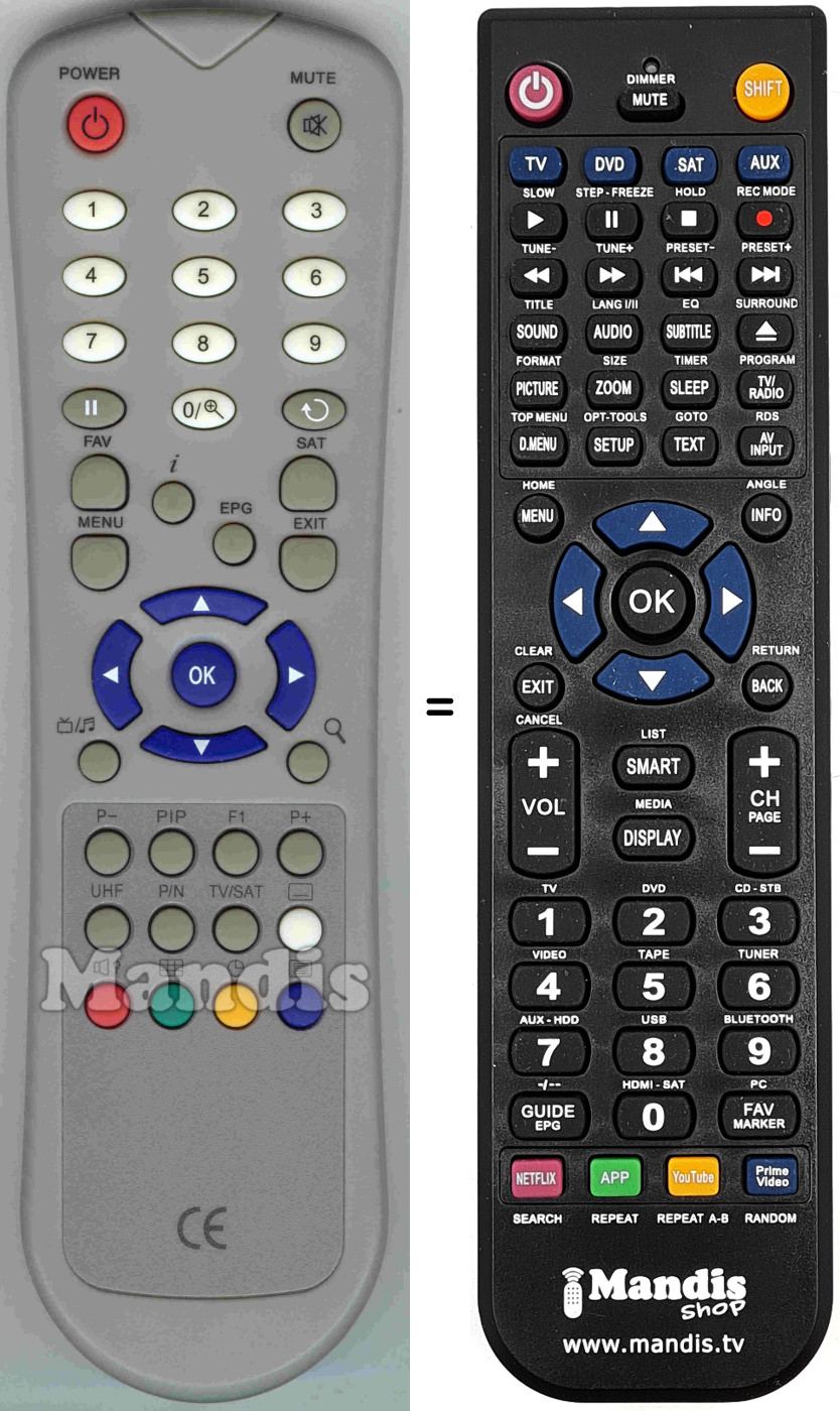 Télécommande qui remplace celle d'origine car elle possède les mêmes fonctions.