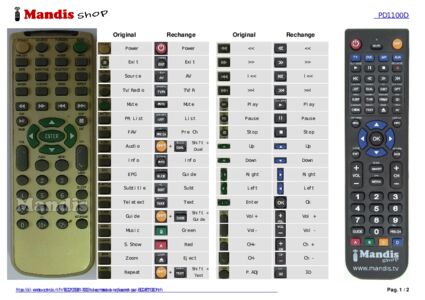 Un document est inclus pour vous aider à utiliser facilement la nouvelle télécommande, en indiquant la correspondance des boutons.
