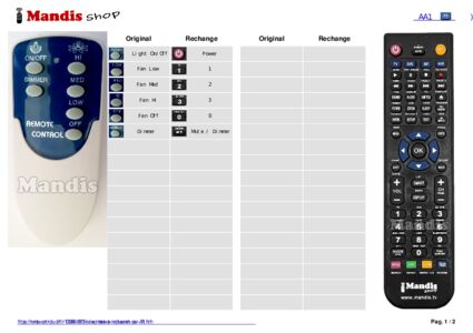 Un document est inclus pour vous aider à utiliser facilement la nouvelle télécommande, en indiquant la correspondance des boutons.