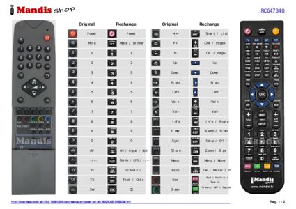 Un document est inclus pour vous aider à utiliser facilement la nouvelle télécommande, en indiquant la correspondance des boutons.