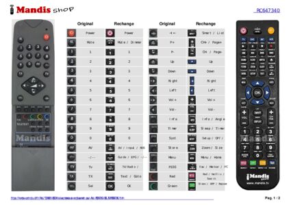 Un document est inclus pour vous aider à utiliser facilement la nouvelle télécommande, en indiquant la correspondance des boutons.