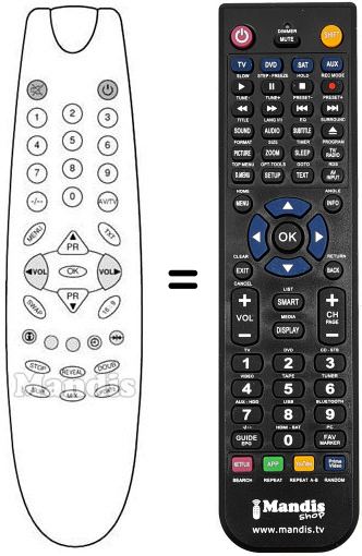 Télécommande qui remplace celle d'origine car elle possède les mêmes fonctions.