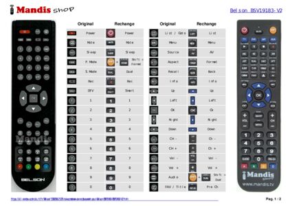 Accueil > Marques > Télécommandes Belson > Télécommande pour Belson BSV19183-V2