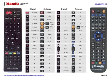 Un document est inclus pour vous aider à utiliser facilement la nouvelle télécommande, en indiquant la correspondance des boutons.