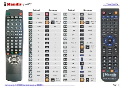 Cette télécommande remplace entièrement votre LCD2006WXTK et offre toutes les fonctions de l'originale.