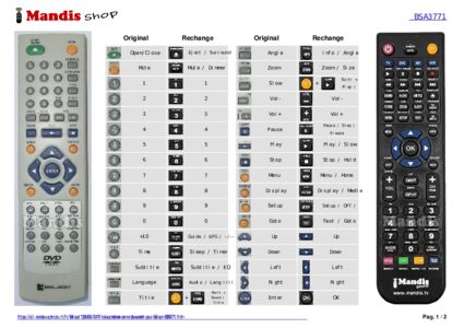 Un document est inclus pour vous aider à utiliser facilement la nouvelle télécommande, en indiquant la correspondance des boutons.