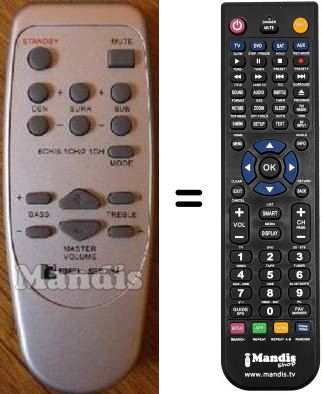 La télécommande équivalente exécute toutes les fonctions, même lorsque la télécommande d'origine commande divers appareils. Dans la télécommande équivalente, est possible de programmer différents appareils (TV, DVD, SAT et AUX) de manière à pouvoir inclure toutes les fonctions de la télécommande d'origine. Si vous voyez le manuel des touches (instructions de la télécommande), vous pouvez vérifier que toutes les fonctions sont présentes.