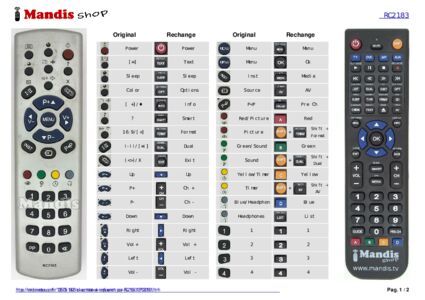 Un document est inclus pour vous aider à utiliser facilement la nouvelle télécommande, en indiquant la correspondance des boutons.