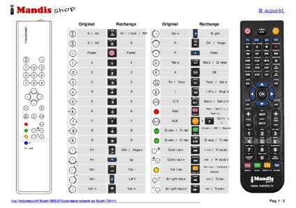 Un document est inclus pour vous aider à utiliser facilement la nouvelle télécommande, en indiquant la correspondance des boutons.